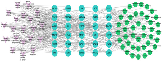 2.2. Main Components and Targets Associated with Gastric Cancer