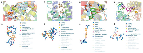 Computer-aided drug design, particularly molecular docking and MD simulations, has emerged as a powerful tool for identifying and optimizing potential bioactive compounds [35,36,37]. Molecular docking can effectively predict the binding modes of small molecules with target proteins and evaluate key interactions such as hydrogen bonds and hydrophobic interactions, thereby efficiently screening candidate molecules with the optimal binding conformations [38,39]. In addition, MD simulations can dynamically monitor the stability of ligand–receptor complexes in simulated solvent environments and calculate binding free energies using methods such as MM/GBSA, thereby improving the accuracy and reliability of screening methods [40]. Compared with traditional experimental screening methods, computational simulations significantly reduce the time and cost while allowing for structural modifications to optimize the stability and specificity of molecular binding [41].