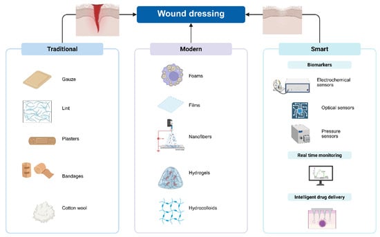 Schematic representation of wound dressing classification. Created in https://BioRender.com.