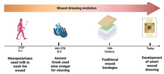 The evolution of wound dressings. Created in https://BioRender.com.