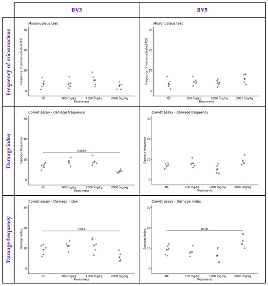 3.4. BV3 and BV5 Have Toxicogenetic Safety