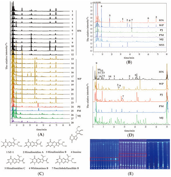 - Kui, H.Q.; Lei, Y.; Jia, C.X.; Xin, Q.C.; Tursun, R.; Zhong, M.; Liu, C.X.; Yuan, R.J. Antithrombotic pharmacodynamics and metabolomics study in raw and processed products of Whitmania pigra Whitman. Heliyon 2024, 10, e27828. [Google Scholar] [CrossRef]