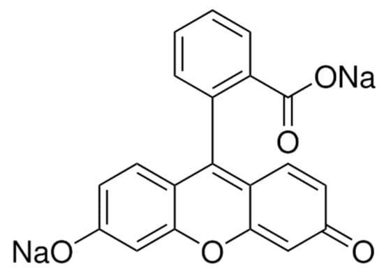 Flu-Na is a small organic dye featuring a xanthene ring core with carboxyl and hydroxyl substituents, which confer strong hydrophilicity. Its chemical structure is shown in Figure 5. Despite its known hydrophilicity, reported log P values for Flu-Na vary considerably in the literature, ranging from −0.67 to −1.52 [35,36]. Computational predictions using ADMET Predictor version 11.0 (Simulations Plus, Inc., Lancaster, CA, USA; https://www.simulations-plus.com/software/admetpredictor/, accessed on 26 March 2025) yielded positive log D values of 4.17 at pH 6.0 and 2.00 at pH 10.0, both inconsistent with the expected hydrophilic properties of Flu-Na. Such discrepancies raise concerns regarding the reliability of existing data and whether they accurately reflect the physicochemical characteristics of Flu-Na.