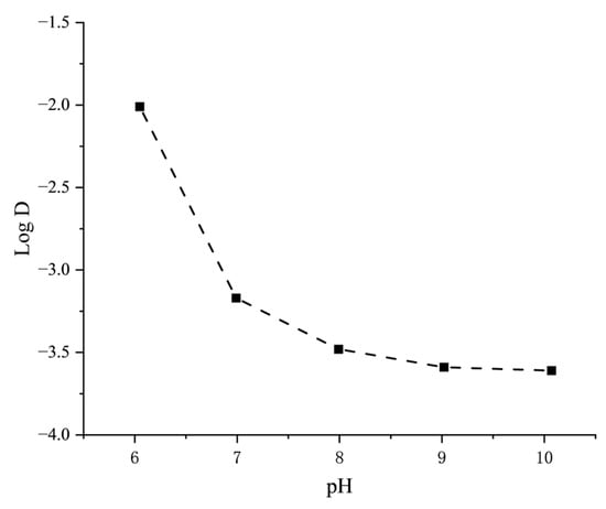 To address this uncertainty, the log D values of Flu-Na were experimentally determined using a shake-flask method following standard partitioning procedures (Figure 6). The measured log D values exhibited a clear pH dependency: as the pH increased from 6.0 to 10.0, the log D values became progressively more negative, confirming the highly hydrophilic nature of Flu-Na under physiological and slightly alkaline conditions.