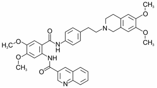 Chemical structure of tariquidar (Inxight Drugs, https://drugs.ncats.io/substance/J58862DTVD, accessed on 8 June 2025) [12].