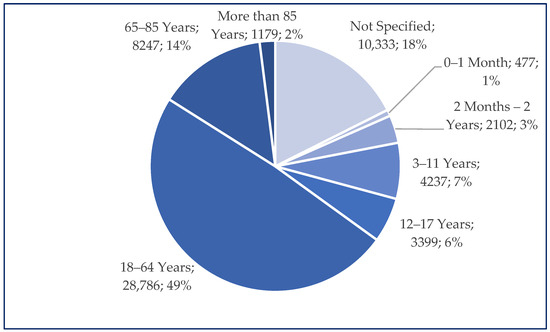 Distribution of reported age groups (n = 58,760).