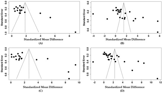 - Egger, M.; Smith, G.D.; Schneider, M.; Minder, C. Bias in Meta-Analysis Detected by a Simple, Graphical Test. BMJ 1997, 315, 629–634. [Google Scholar] [CrossRef]