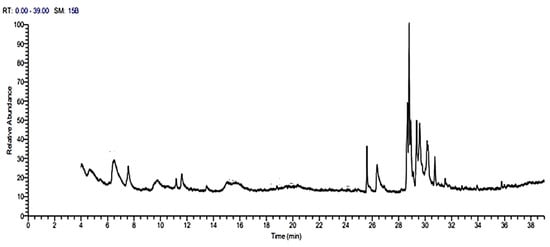 GC-MS total ion chromatogram (TIC) of analyzed GPE.