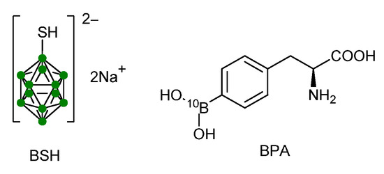 - Barth, R.F.; Gupta, N.; Kawabata, S. Evaluation of Sodium Borocaptate (BSH) and Boronophenylalanine (BPA) as Boron Delivery Agents for Neutron Capture Therapy (NCT) of Cancer: An Update and a Guide for the Future Clinical Evaluation of New Boron Delivery Agents for NCT. Cancer Commun. 2024, 44, 893–909. [Google Scholar] [CrossRef]