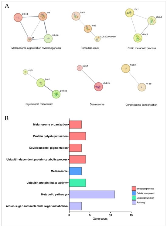 - Sherman, B.T.; Hao, M.; Qiu, J.; Jiao, X.; Baseler, M.W.; Lane, H.C.; Imamichi, T.; Chang, W. DAVID: A web server for functional enrichment analysis and functional annotation of gene lists (2021 update). Nucleic Acids Res. 2022, 50, W216–W221. [Google Scholar] [CrossRef] [PubMed]