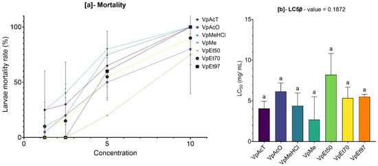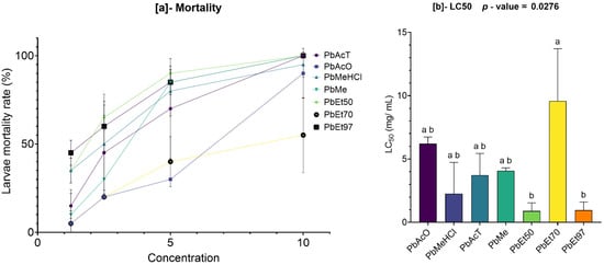 114] reported LC50 values of 10.10 mg/mL and 19.90 mg/mL—slightly above the 0.1 mg/mL threshold—for ethanolic extracts of