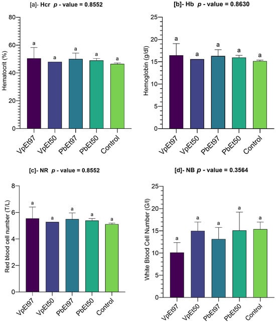 V. paradoxa stem bark extract. Hematological parameters, including hematocrit, hemoglobin, and red and white blood cell counts, showed no significant differences between the control and treated groups. This aligns with the findings of Ayankunle et al., who observed that, except for platelet count, the administration of ethanolic V. paradoxa stem bark extract did not alter hematological parameters in the experimental model [