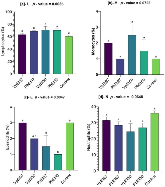 121], and further studies are needed to confirm this activity. Monocyte and eosinophil levels remained comparable to the control. Neutrophils, eosinophils, basophils, monocytes, and lymphocytes are white blood cells that play a crucial role in defending against infection and protecting the body from external threats [