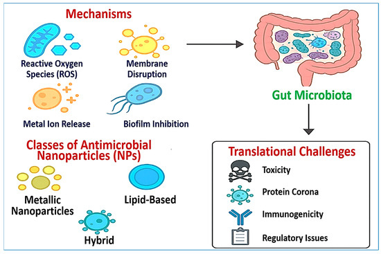 | Environmental impact and microbiome disruption | Persistent NPs, especially metal-based ones, may harm beneficial microbes in the environment or gut microbiota. | Prioritize green synthesis methods and biodegradable nanomaterials that limit ecological toxicity. | [206] |