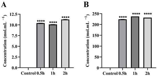 Induction of DAMP release and consequent stimulation of immunogenic cell death can be determined by ELISA assays, which quantify the release of calreticulin and HMGB1 by B16F10-Nex2 cells in the process of death. For this, cells were seeded at a density of 5 × 105 cells·well−1 in a 6-well microplate and treated with PEPAD at the IC50 concentration. The ELISA kits used for the assay were the Mouse Calreticulin ELISA Kit and Mouse High Mobility Group Protein B1 (HMGB-1) ELISA Kit (Bioassay Technology Laboratory, Jiaxing, China). The assays were performed according to the manufacturer’s instructions.