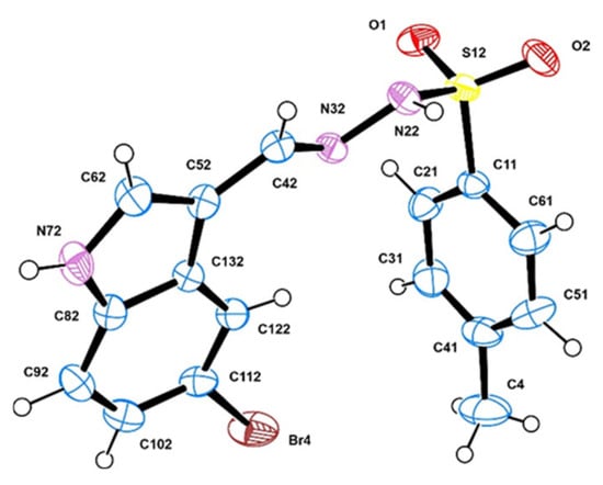 2.4. X-Ray Crystallography of N′-[(E)-(5-Bromo-1H-indol-3-yl)methylidene]-4-methylbenzene-1-sulfonohydrazide, 3e