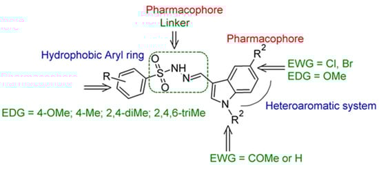 Structural features influencing activity in series 3a–j and prior arylsulfonylhydrazone derivatives [48].