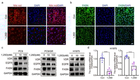 Yang, J.; Fang, M.; Hou, M.; Duan, Y.; Wang, J.; Hu, K.; Liu, S.; Liu, X.; Peng, X.; Ding, X.; et al. VDR Decrease Enhances the Efficacy of 1,25-Dihydroxyvitamin D3 Inhibiting Gefitinib Resistance by Regulating EGFR/FASN Loop in NSCLC Cells. Pharmaceuticals 2025, 18, 1238. https://doi.org/10.3390/ph18081238
