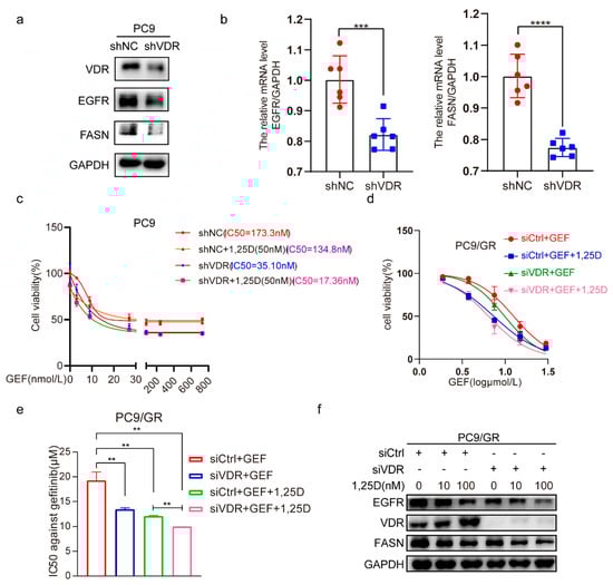 Yang J, Fang M, Hou M, Duan Y, Wang J, Hu K, Liu S, Liu X, Peng X, Ding X, et al. VDR Decrease Enhances the Efficacy of 1,25-Dihydroxyvitamin D3 Inhibiting Gefitinib Resistance by Regulating EGFR/FASN Loop in NSCLC Cells. Pharmaceuticals. 2025; 18(8):1238. https://doi.org/10.3390/ph18081238