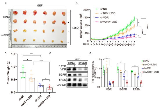 2.6. Knockdown of VDR Combined with 1,25(OH)2D3 Inhibits Tumor Growth by Suppressing EGFR and FASN In Vivo
