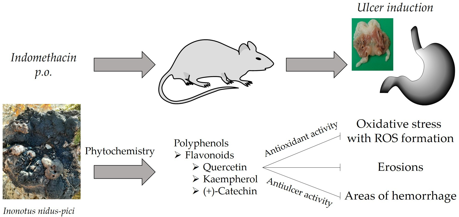Slavov I, Ivanova N, Radeva-Ilieva M, Stoeva-Grigorova S, Dzhenkov D, Georgiev KD. Phytochemical Analysis and Anti-Ulcer Potential of Phenolic Compounds of Inonotus nidus-pici Pilát. Pharmaceuticals. 2025; 18(9):1265. https://doi.org/10.3390/ph18091265