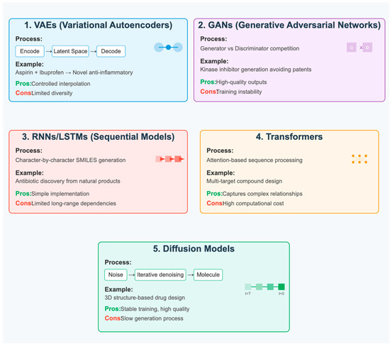 - Mouchlis, V.D.; Afantitis, A.; Serra, A.; Fratello, M.; Papadiamantis, A.G.; Aidinis, V.; Lynch, I.; Greco, D.; Melagraki, G. Advances in de Novo Drug Design: From Conventional to Machine Learning Methods. Int. J. Mol. Sci. 2021, 22, 1676. [Google Scholar] [CrossRef] [PubMed] [PubMed Central]