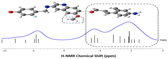 Among various NMR observables, 1H-NMR chemical shifts are particularly valuable for validating computational methods such as DFT, owing to their high experimental precision, reproducibility, and sensitivity to local electronic environments. Protons yield sharp, well-resolved signals, and the standardized 1H-NMR scale allows for direct comparison with theoretical predictions. The relatively narrow chemical shift range (0–12 ppm) enhances the detection of discrepancies between calculated and experimental values. In addition, 1H-NMR shifts are highly responsive to subtle electronic effects, including hydrogen bonding, where downfield shifts (higher ppm values) typically indicate deshielding of protons involved in intra- or intermolecular interactions [26,38].