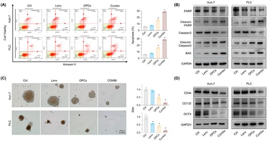2.3. Combination of OPCs and Lenvatinib Induces Apoptosis and Suppresses Cancer Stemness in Resistance HCC Cell Lines