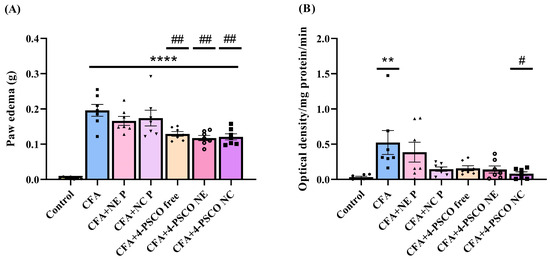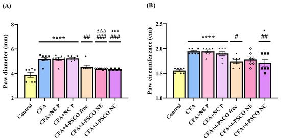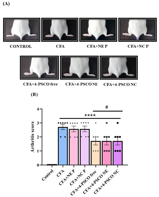 2.2. Therapeutic Effects of 4-PSCO in Free or Nanoencapsulated Form on the Arthritis Severity of Arthritis in CFA-Induced RA