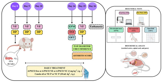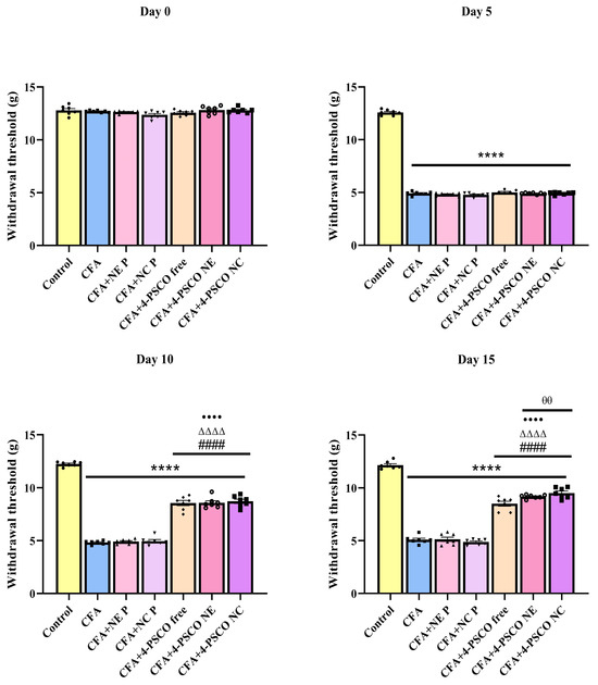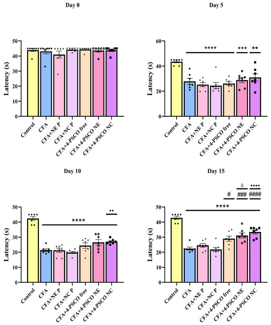 2.4. Administration of 4-PSCO in Free or Nanoencapsulated Form Attenuates the Mechanical and Thermal Nociception Induced by CFA in Mice