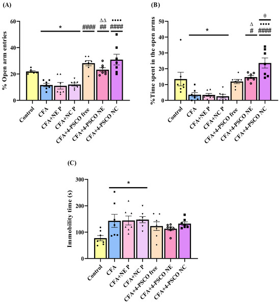 2.5. CFA Caused Depression-like and Anxiety-like Behaviors in Animals: Therapeutic Potential of 4-PSCO in Free or Nanoencapsulated Form
