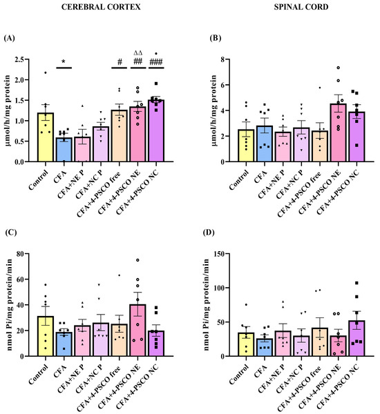 2.6. Effects of 4-PSCO in Free or Nanoencapsulated Form on AChE and Na+, K+-ATPase Activities