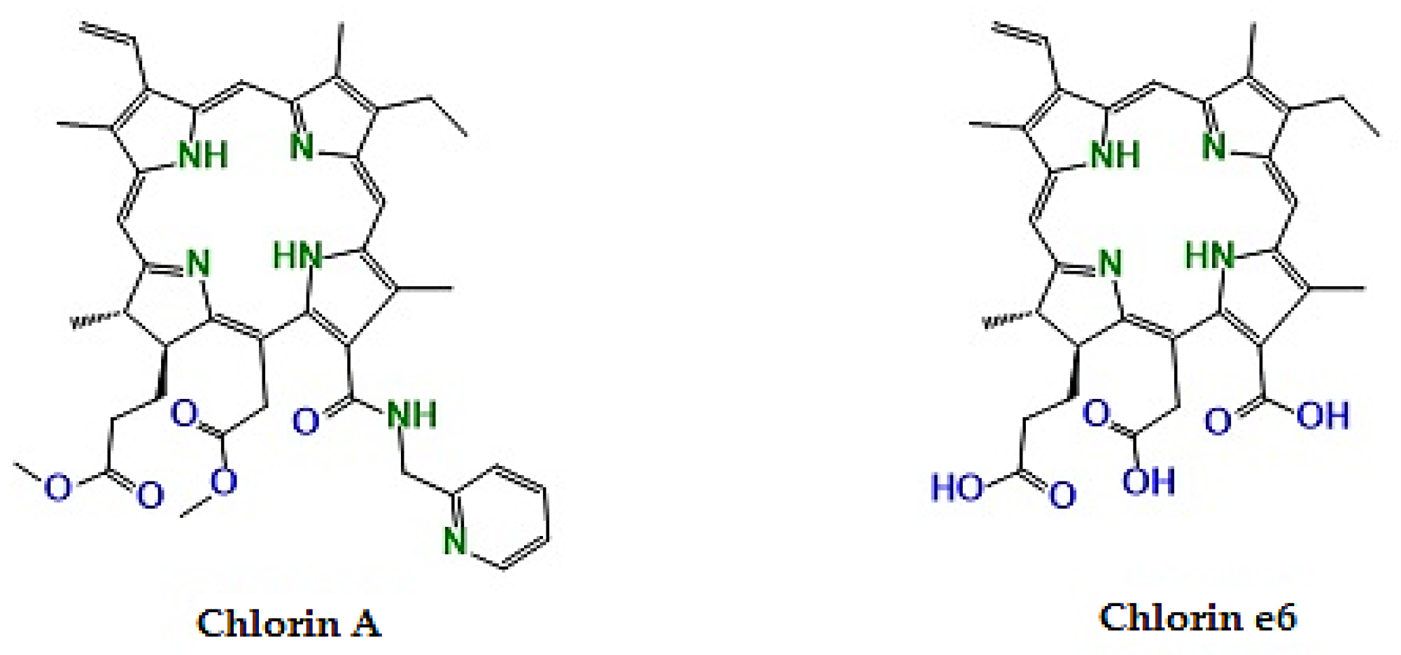 - Michalak, M.; Szymczyk, J.; Pawska, A.; Wysocki, M.; Janiak, D.; Ziental, D.; Ptaszek, M.; Güzel, E.; Sobotta, L. Chlorin Activity Enhancers for Photodynamic Therapy. Molecules 2025, 30, 2810. [Google Scholar] [CrossRef]