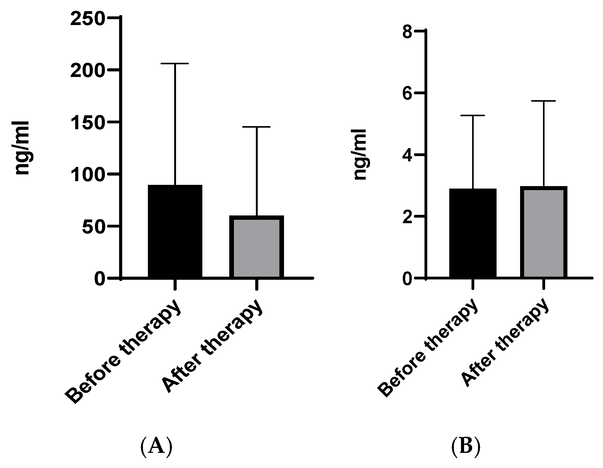 2.1. CHI3L1 and CHI3L2 Protein and Gene Levels in Patients on Different Therapy Protocols