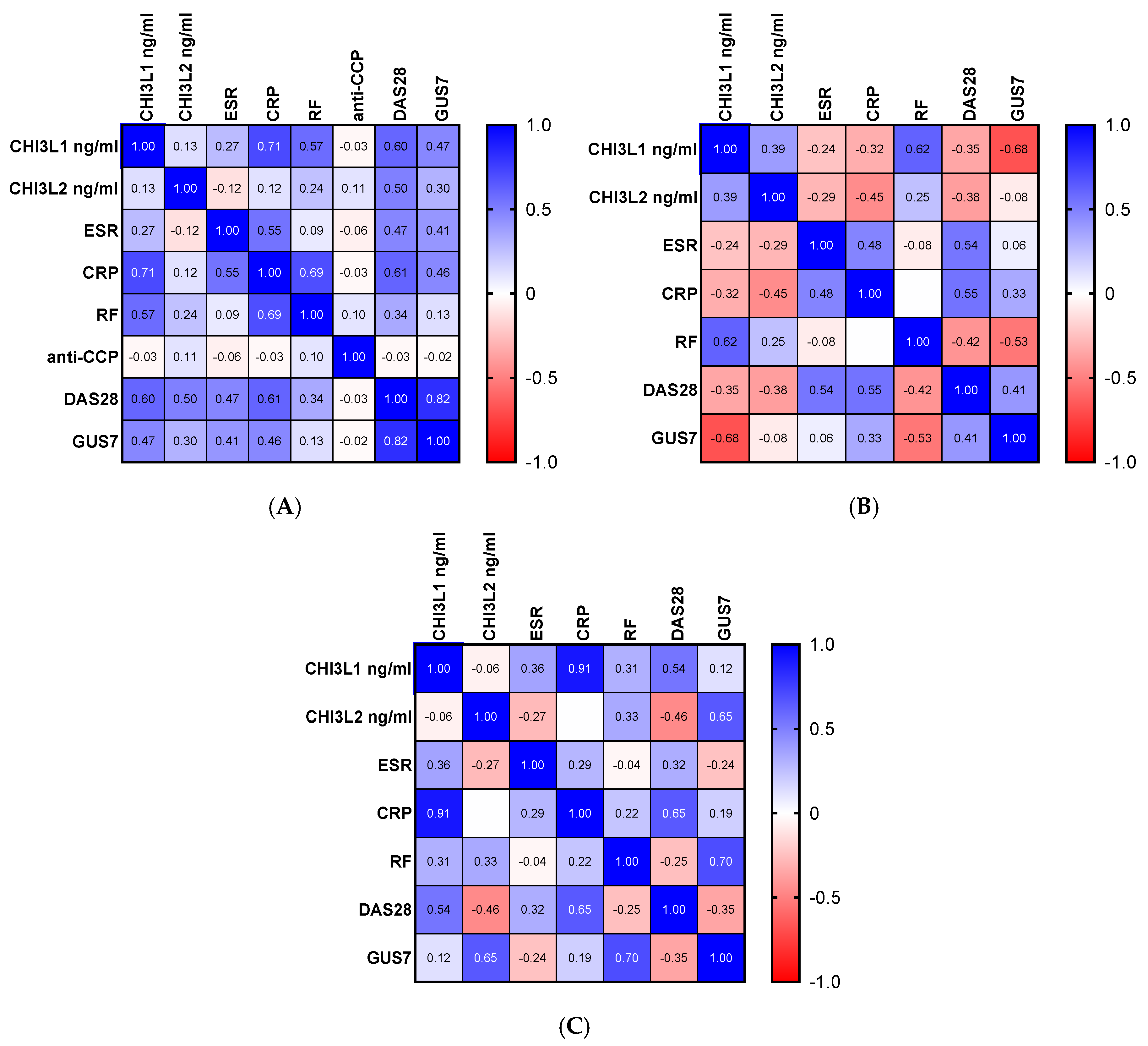 Gene and Protein Profiles of CHI3L1 and CHI3L2 in Patients with Rheumatoid Arthritis