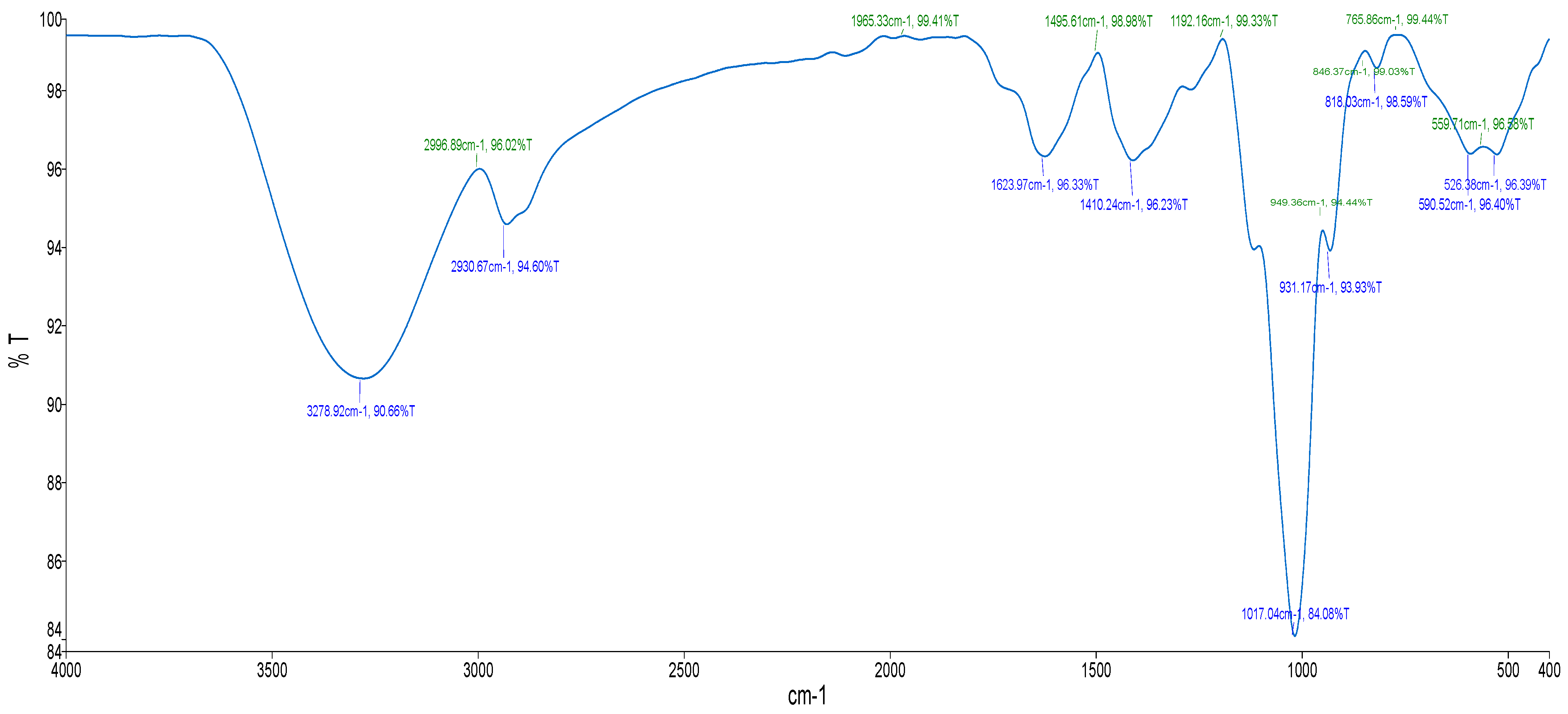 | 1 | 3278.92 | 3570–3200 | O–H stretch |