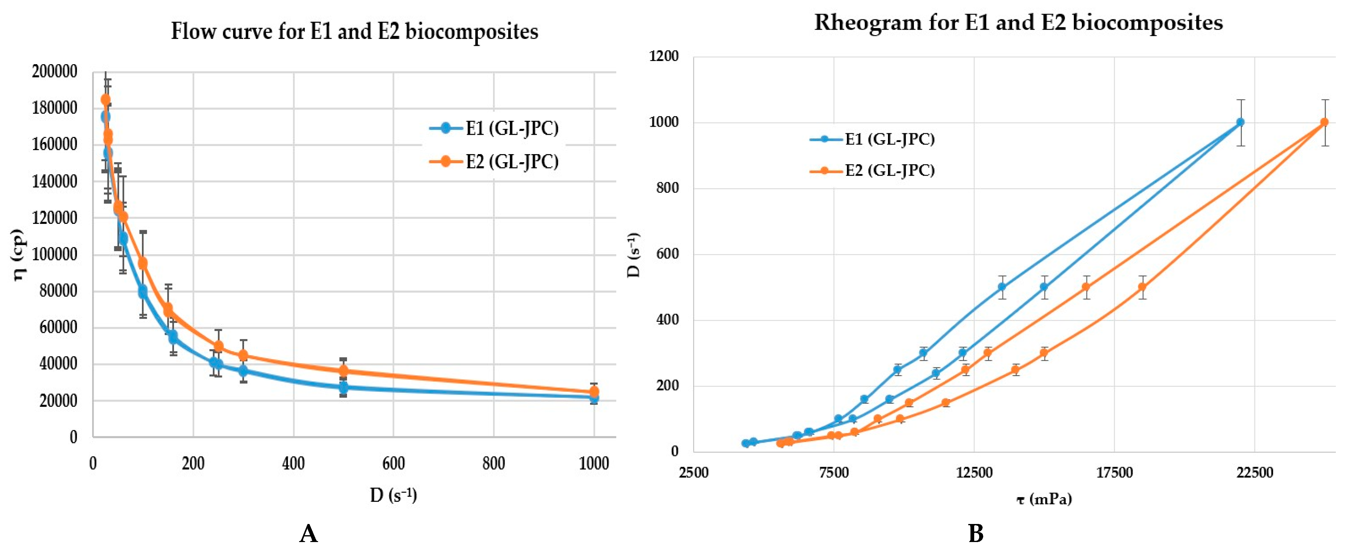 2.6.3. Rheological Study of the Newly Obtained Biocomposites