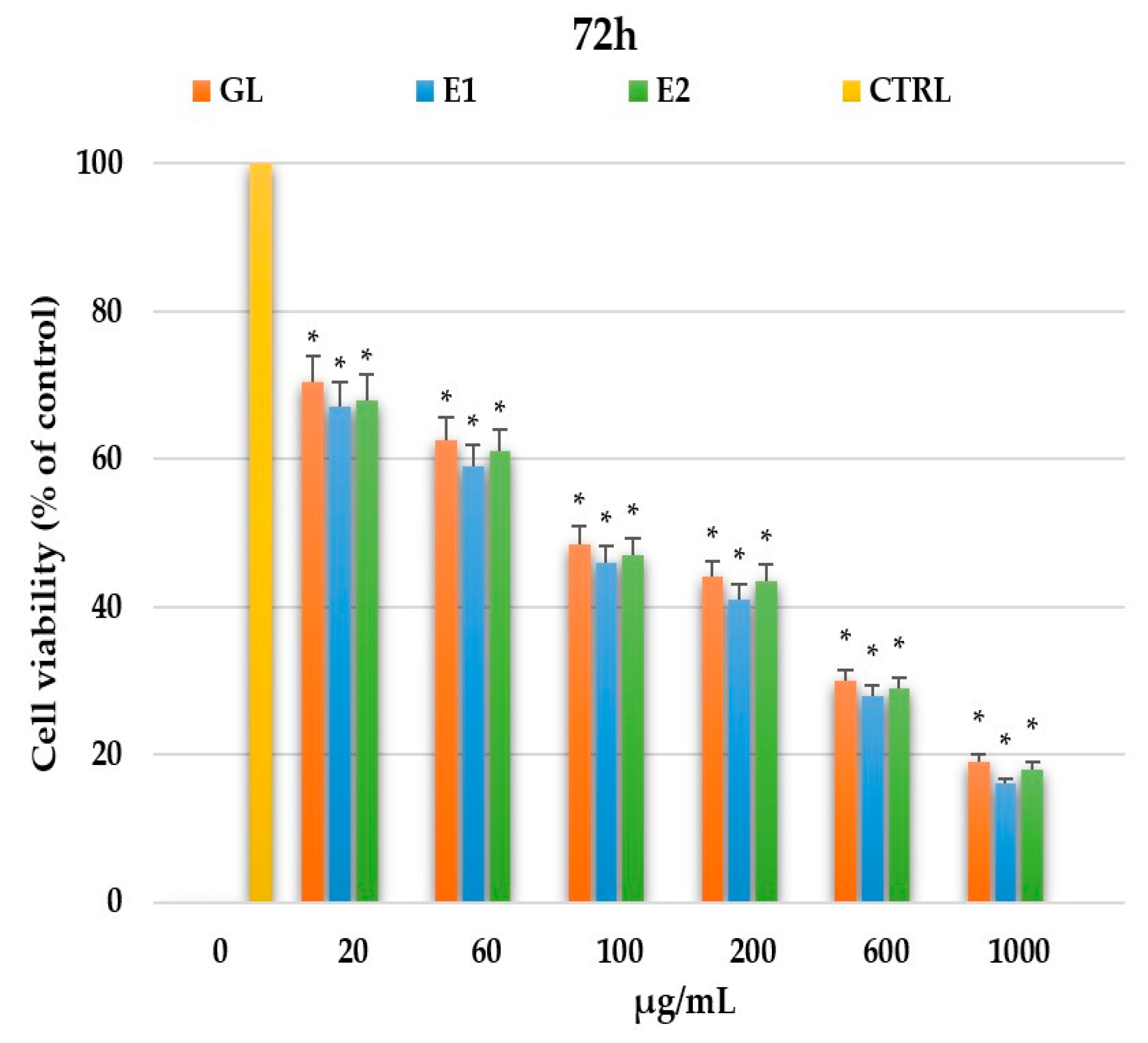 2.9.2. Anticancer Activity on the HSC3 Lines Cells of New Composites E1 and E2 with GL-JPC