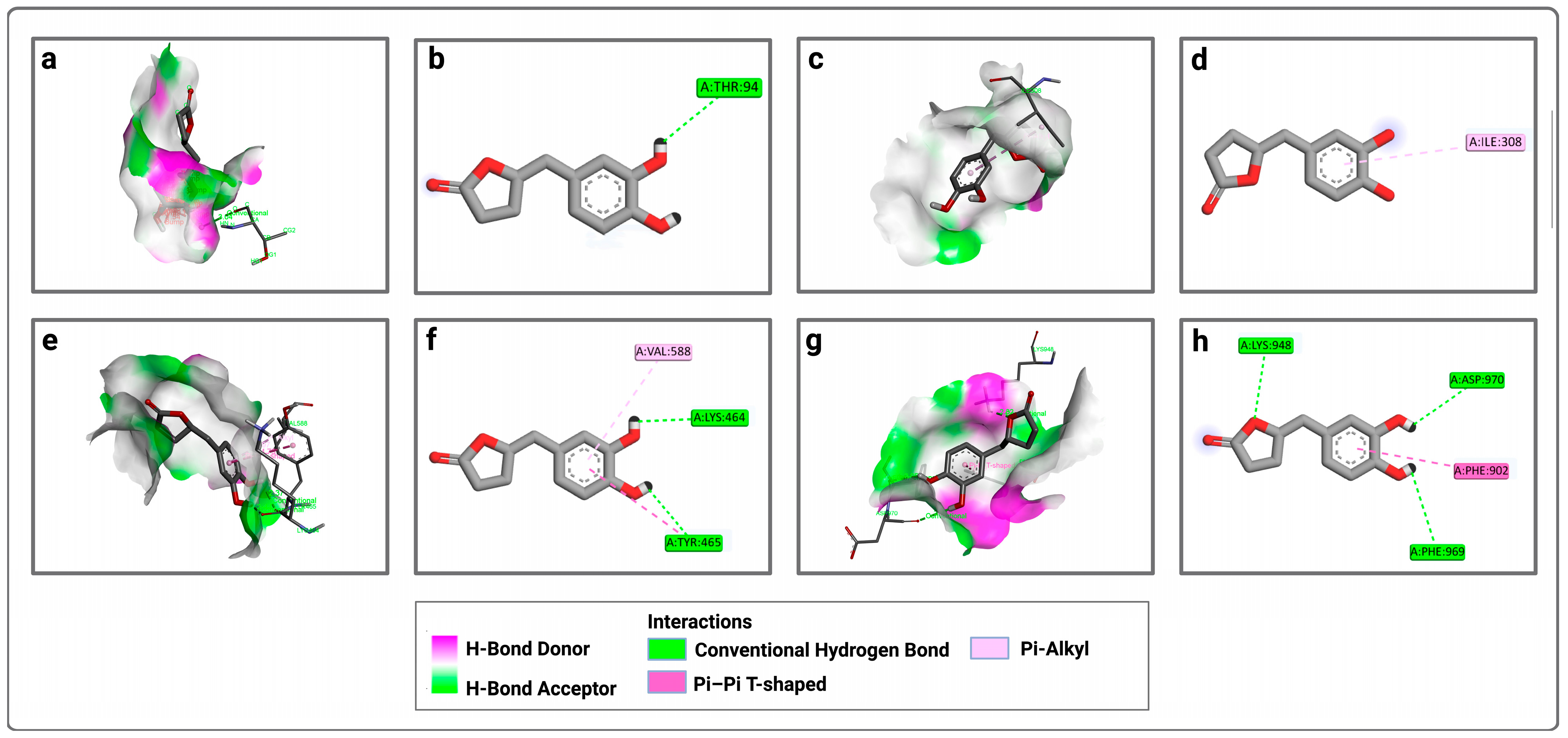 - Kalirajan, R.; Pandiselvi, A.; Gowramma, B.; Balachandran, P. In-Silico Design, ADMET Screening, MM-GBSA Binding Free Energy of Some Novel Isoxazole Substituted 9-Anilinoacridines as HER2 Inhibitors Targeting Breast Cancer. Curr. Drug Res. Rev. 2019, 11, 118–128. [Google Scholar] [CrossRef]