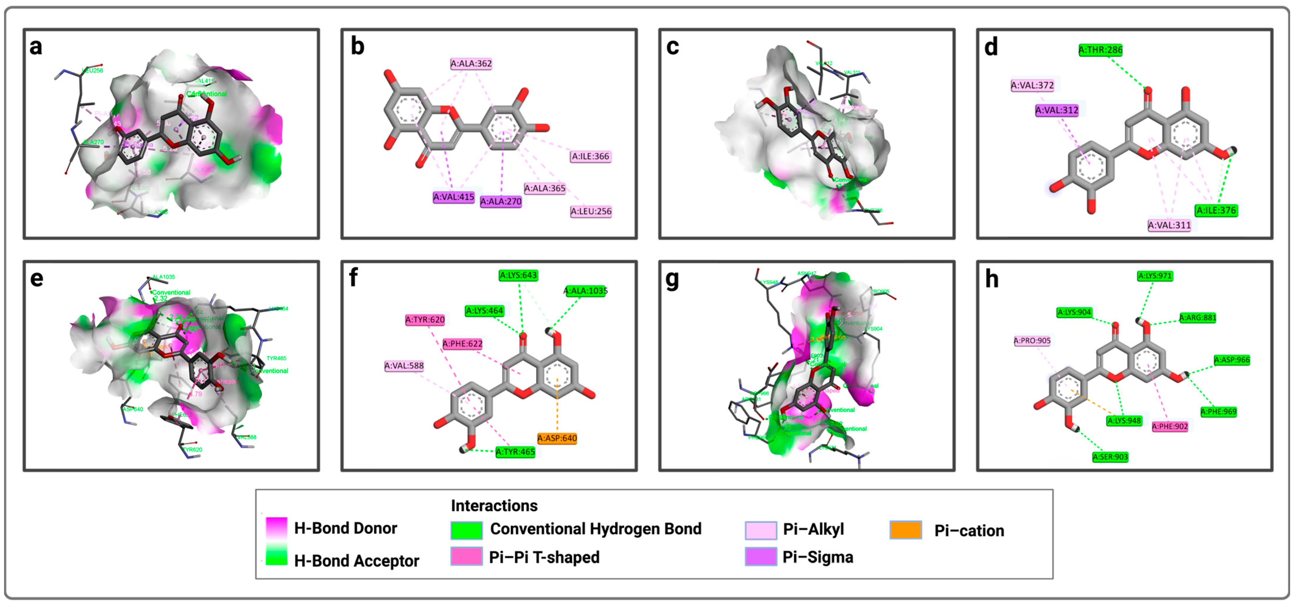 - Kandeel, M.; Iqbal, M.N.; Ali, I.; Malik, S.; Malik, A.; Sehgal, S.A. Comprehensive in Silico Analyses of Flavonoids Elucidating the Drug Properties against Kidney Disease by Targeting AIM2. PLoS ONE 2023, 18, e0285965. [Google Scholar] [CrossRef]