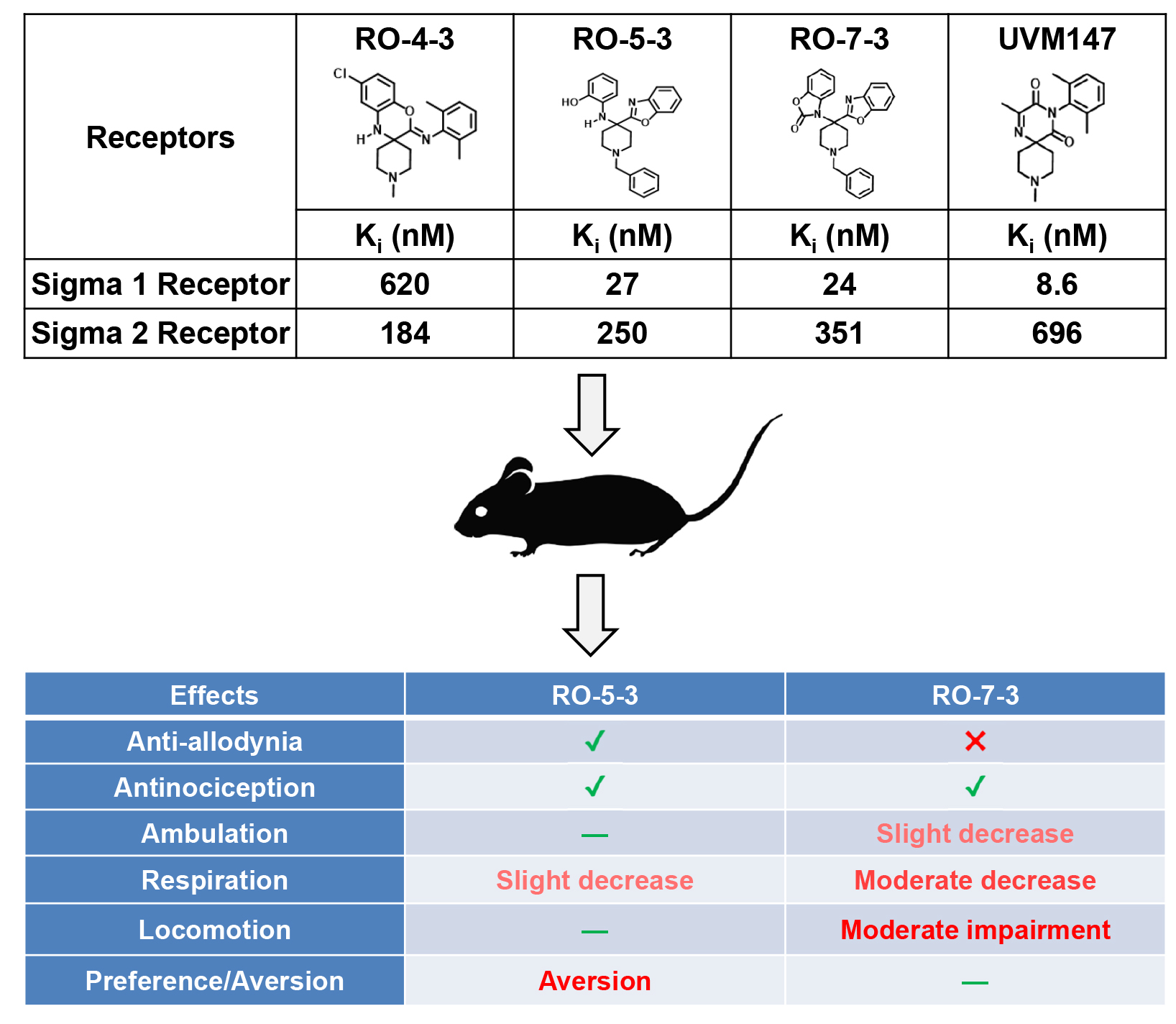| Receptors | RO-4-3 | RO-5-3 | RO-7-3 | UVM147 | |||