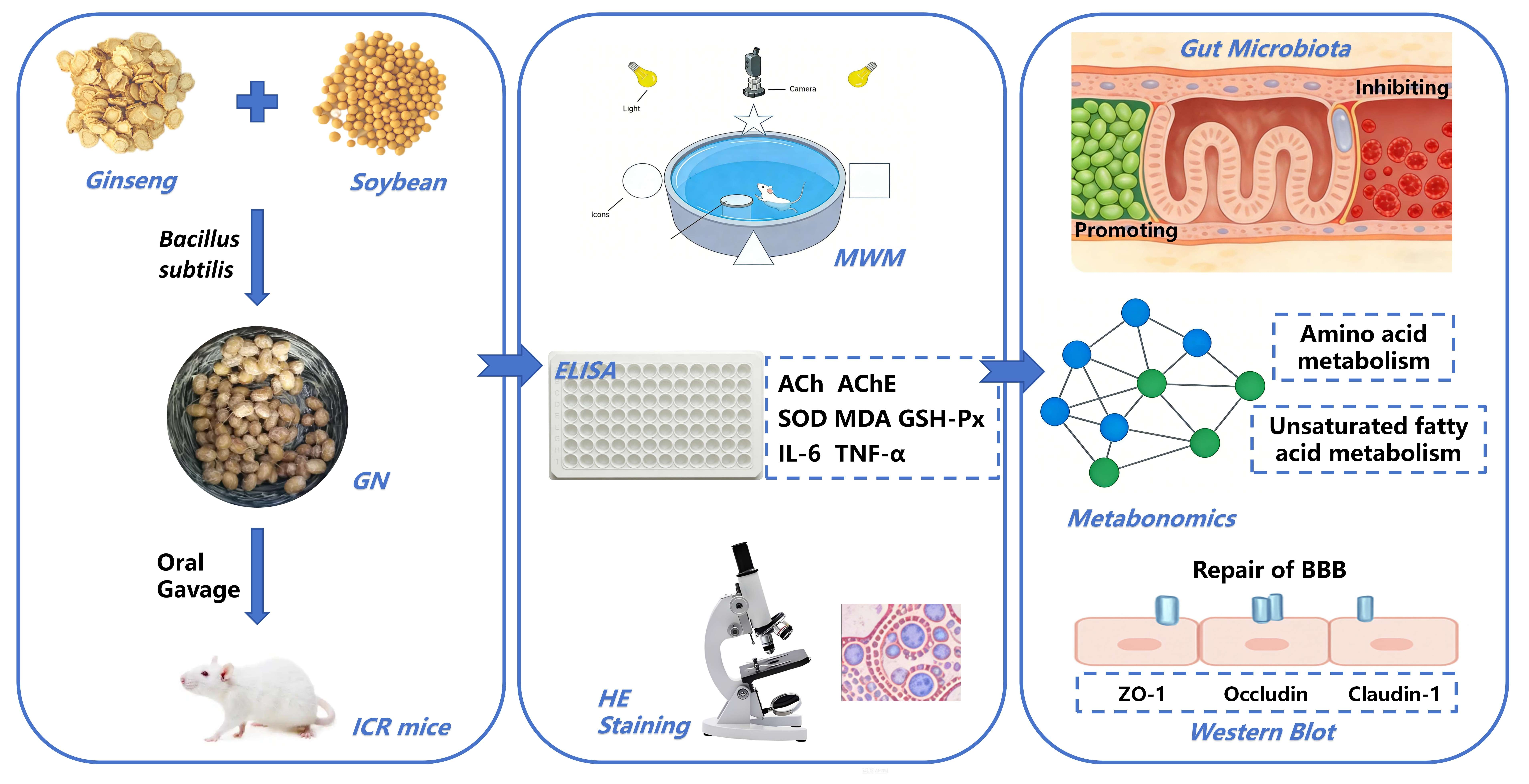 Li, Z.; Wang, H.; Yuan, H.; Zhang, Y.; Yang, B.; Ji, G.; Yao, Z.; Kuang, M.; Wu, X.; Wang, S.; et al. Investigating the Protective Mechanisms of Ginseng-Natto Composite Fermentation Products in Alzheimer’s Disease: A Gut Microbiota and Metabolomic Approach. Pharmaceuticals 2026, 19, 123. https://doi.org/10.3390/ph19010123