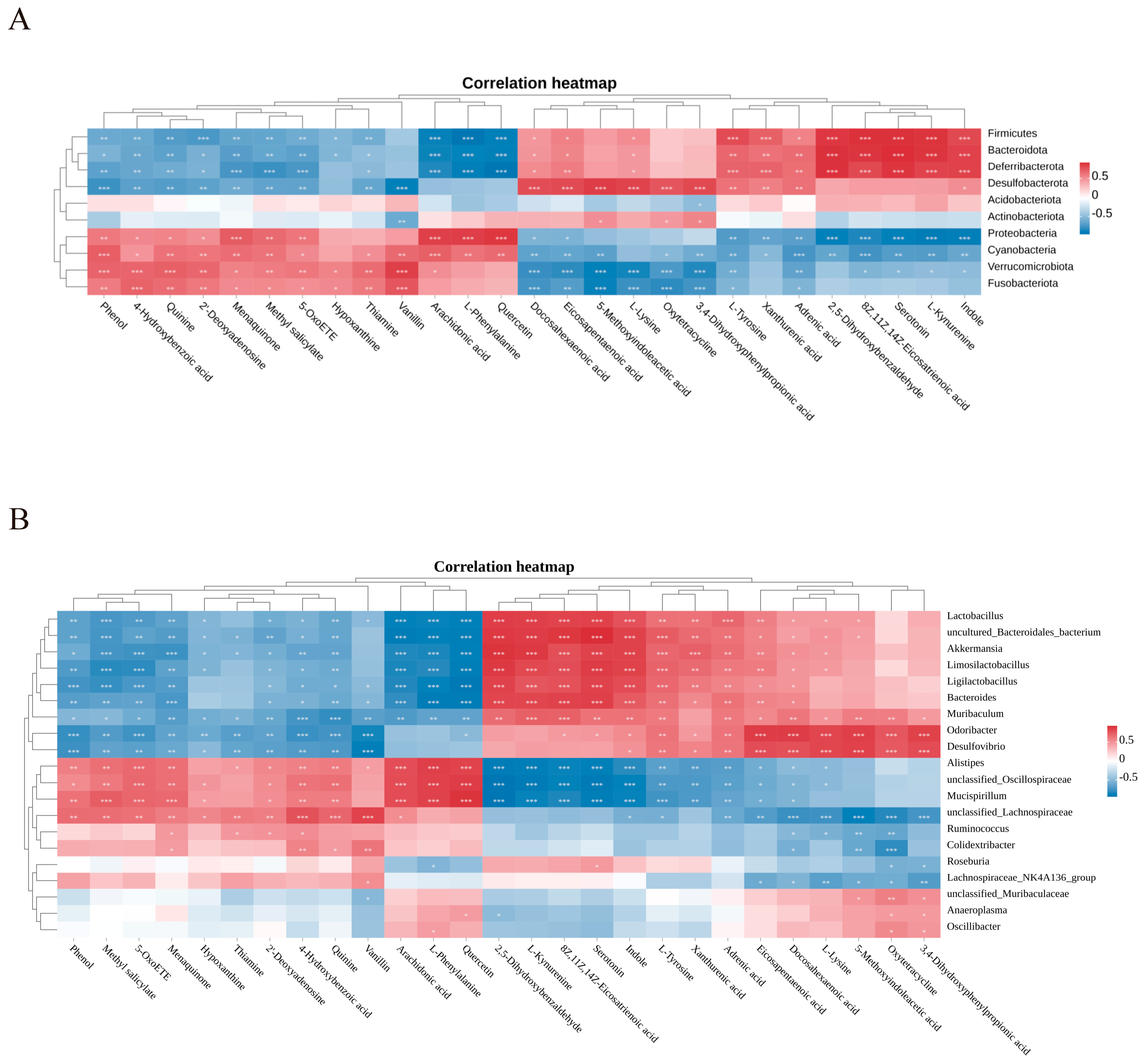 2.7. Gut Microbiota–Metabolite Correlation Analysis