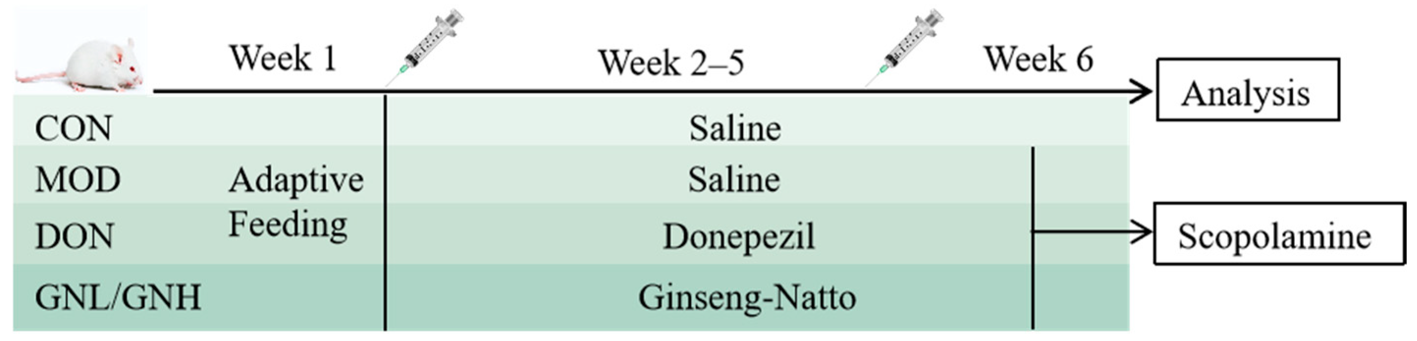 2.2. Effects of GN on Learning and Memory Impairment of AD Mice