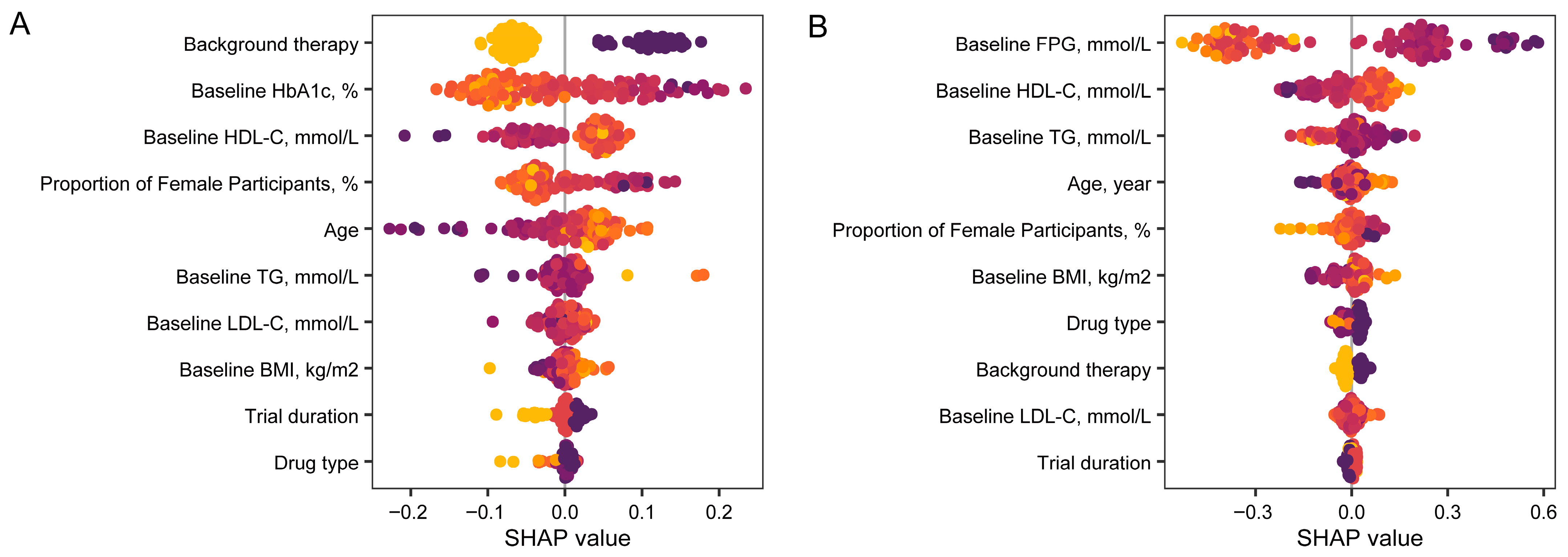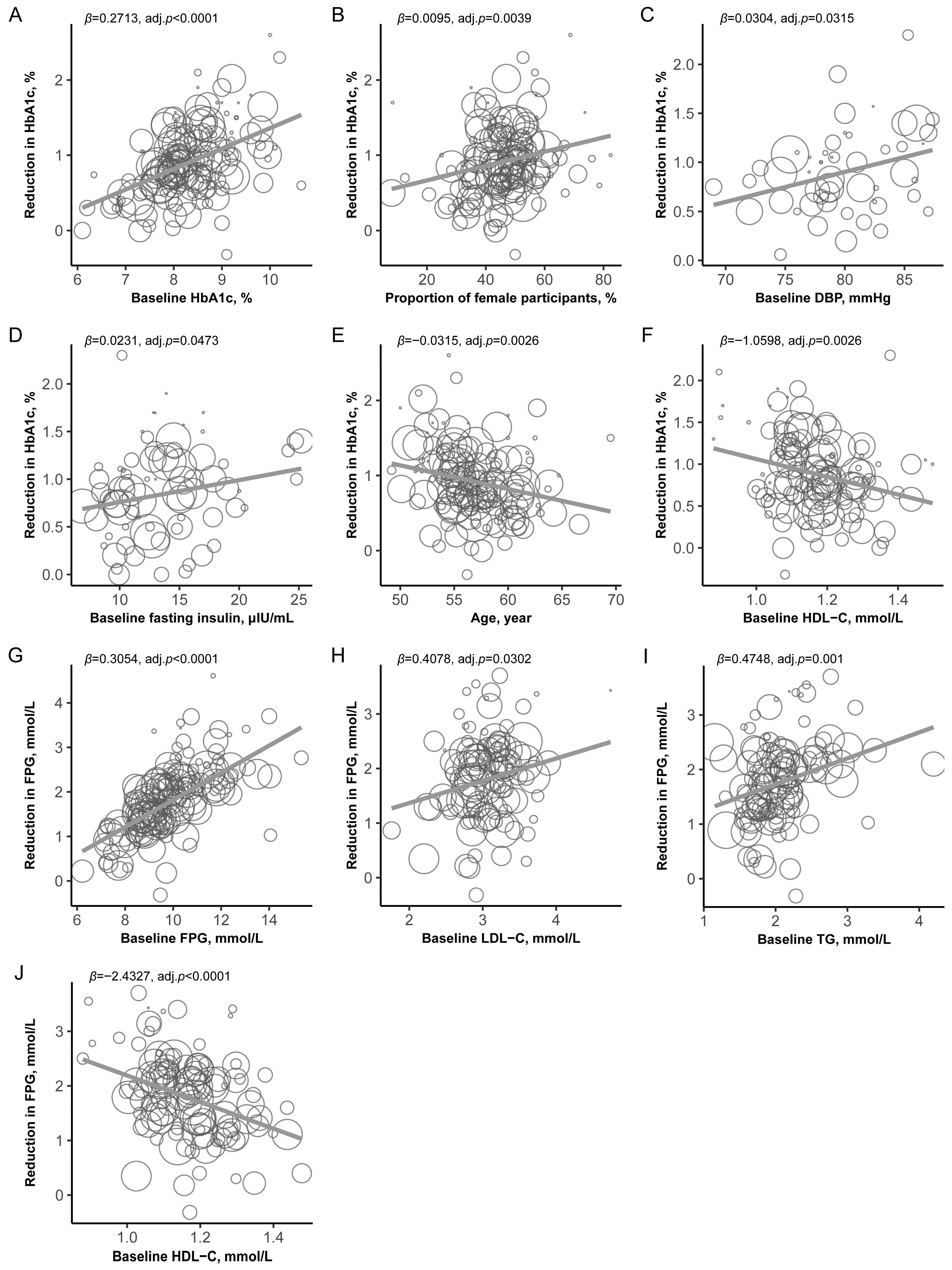 | Baseline HDL-C, mmol/L | −0.9304 | [−1.5176, −0.3431] | 0.0019 | 109 | −1.8722 | [−2.812, −0.9323] | <0.0001 | 103 |