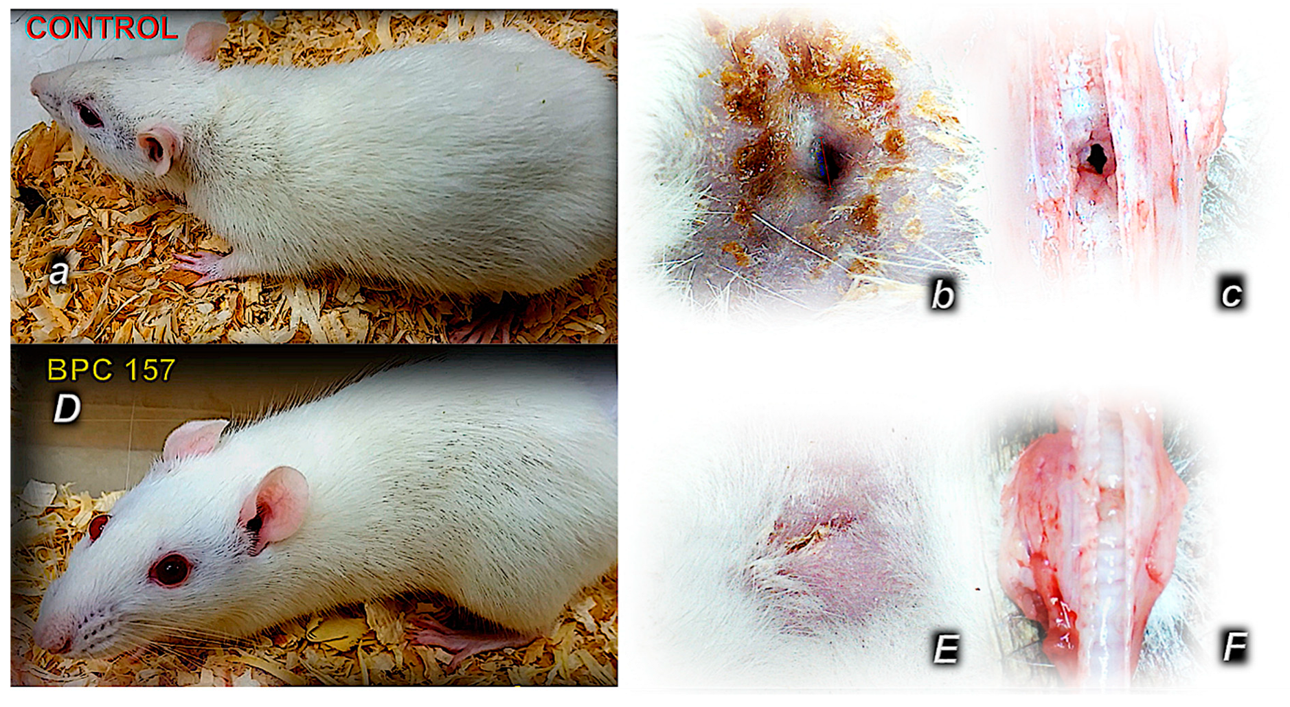 - Vukusic, D.; Zenko Sever, A.; Sever, M.; Drmic, D.; Milavic, M.; Sikiric, S.; Rasic, D.; Krezic, I.; Gojkovic, S.; Prtoric, A.; et al. Duodenocolic fistula healing by pentadecapeptide BPC 157 in rats. A cytoprotection viewpoint. J. Physiol. Pharmacol. 2024, 75, 89–104. [Google Scholar] [CrossRef] [PubMed]
