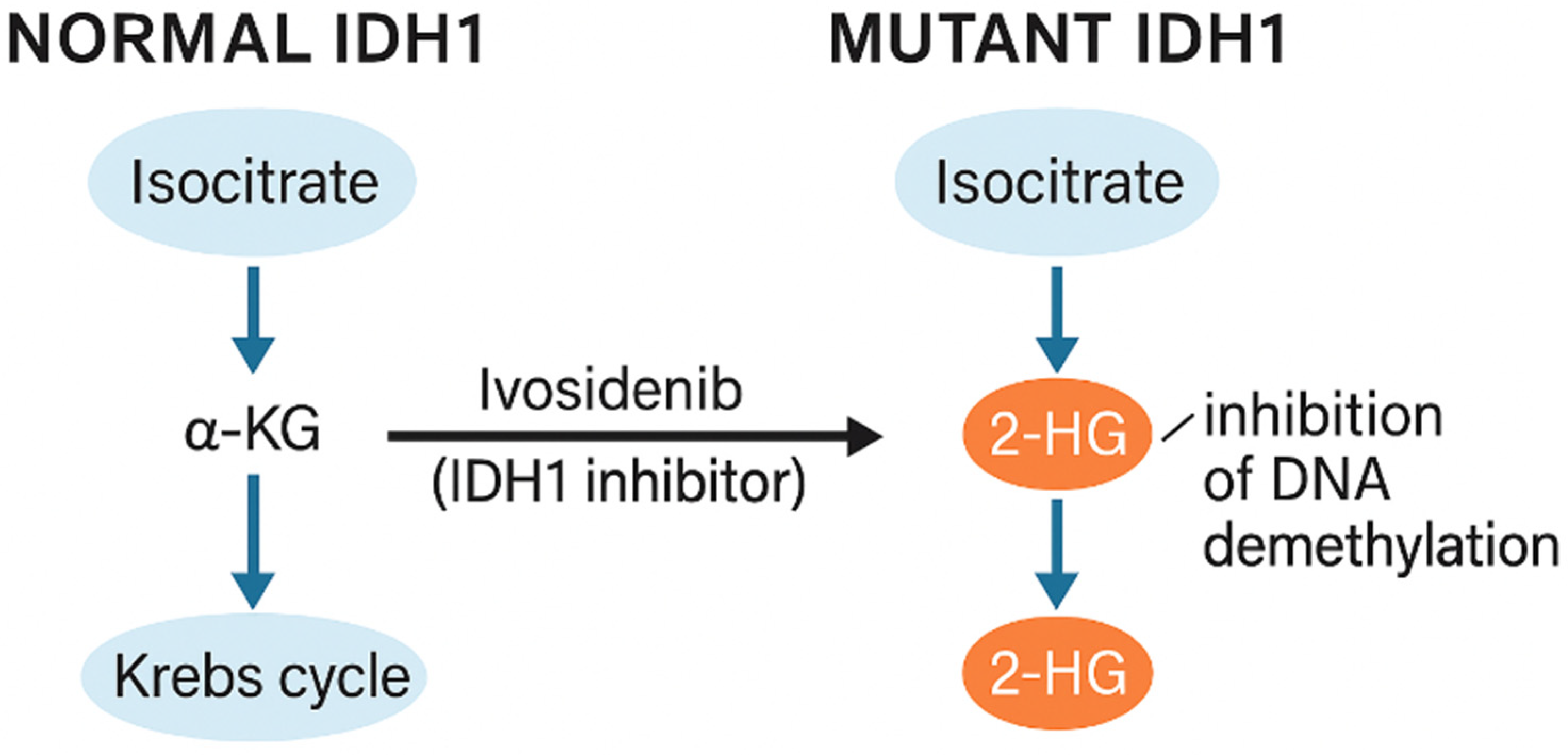 - DiNardo, C.D.; Stein, A.S.; Stein, E.M.; Fathi, A.T.; Frankfurt, O.; Schuh, A.C.; Döhner, H.; Martinelli, G.; Patel, P.A.; Raffoux, E.; et al. Mutant Isocitrate Dehydrogenase 1 Inhibitor Ivosidenib in Combination With Azacitidine for Newly Diagnosed Acute Myeloid Leukemia. J. Clin. Oncol. 2021, 39, 57–65, Erratum in J. Clin. Oncol. 2021, 39, 341. https://doi.org/10.1200/JCO.20.03658. [Google Scholar] [CrossRef]