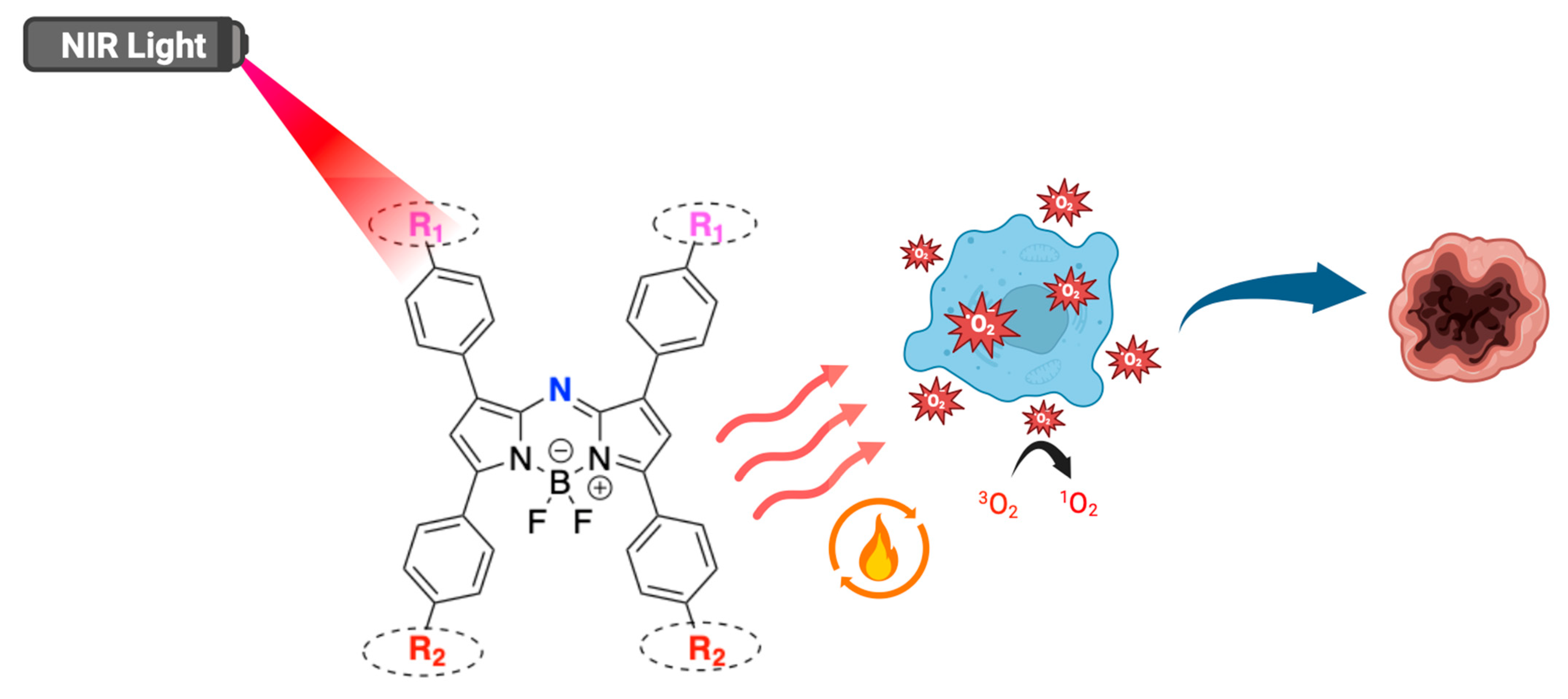 - Hlogyik, T.; Laczkó-Rigó, R.; Bakos, É.; Poór, M.; Kele, Z.; Özvegy-Laczka, C.; Mernyák, E. Synthesis and in vitro photodynamic activity of aza-BODIPY-based photosensitizers. Org. Biomol. Chem. 2023, 21, 6018–6027. [Google Scholar] [CrossRef]