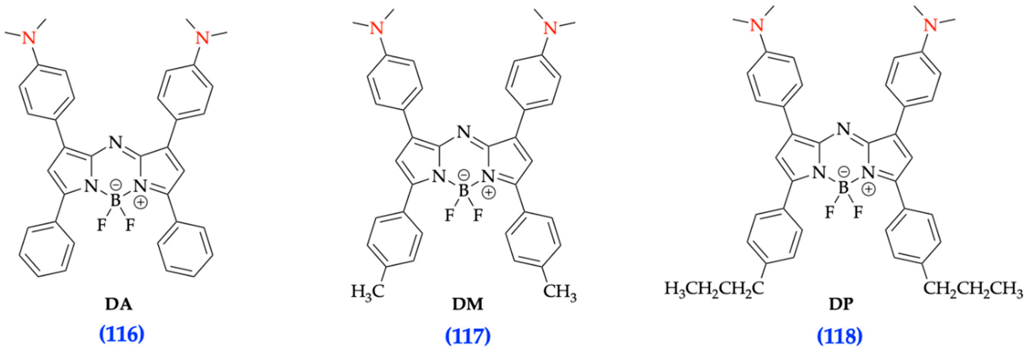 3.5. Synthetic Modifications Favoring Bathochromic Shift