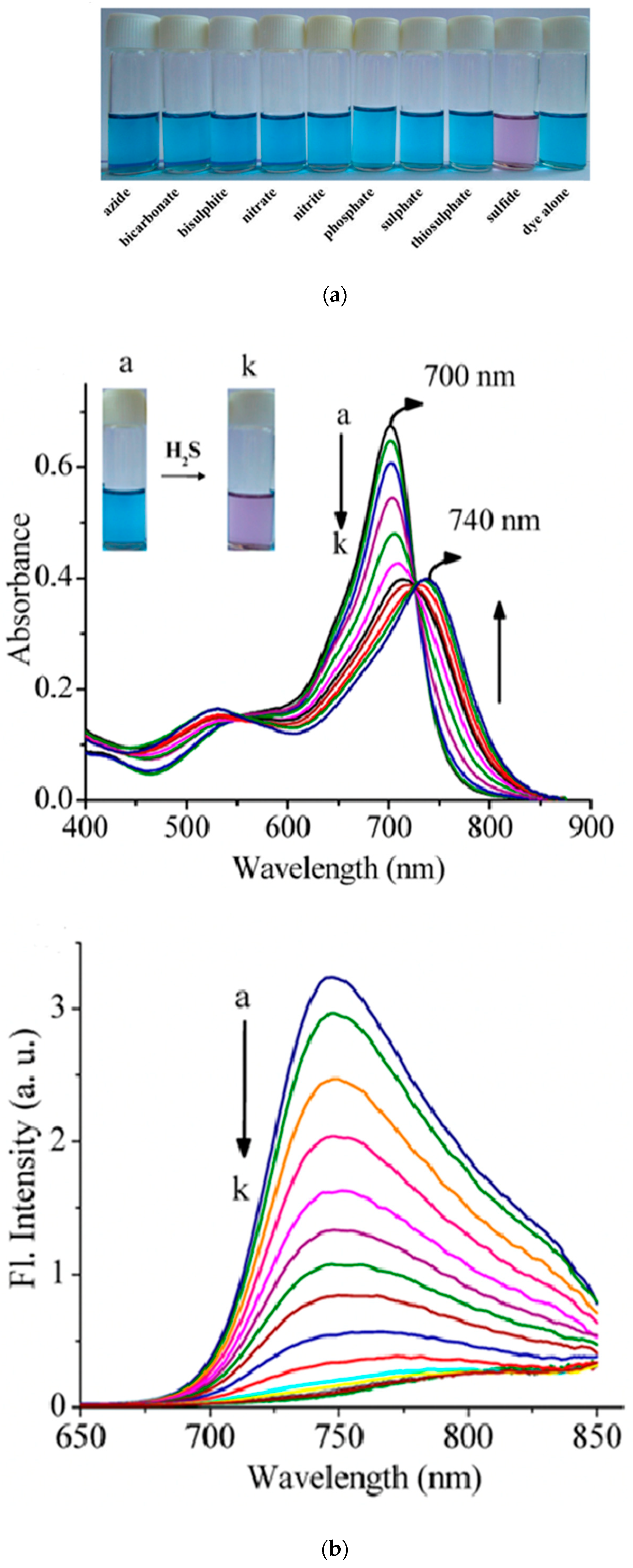 - Adarsh, N.; Krishnan, M.S.; Ramaiah, D. Sensitive Naked Eye Detection of Hydrogen Sulfide and Nitric Oxide by Aza-BODIPY Dyes in Aqueous Medium. Anal. Chem. 2014, 86, 9335–9342. [Google Scholar] [CrossRef]